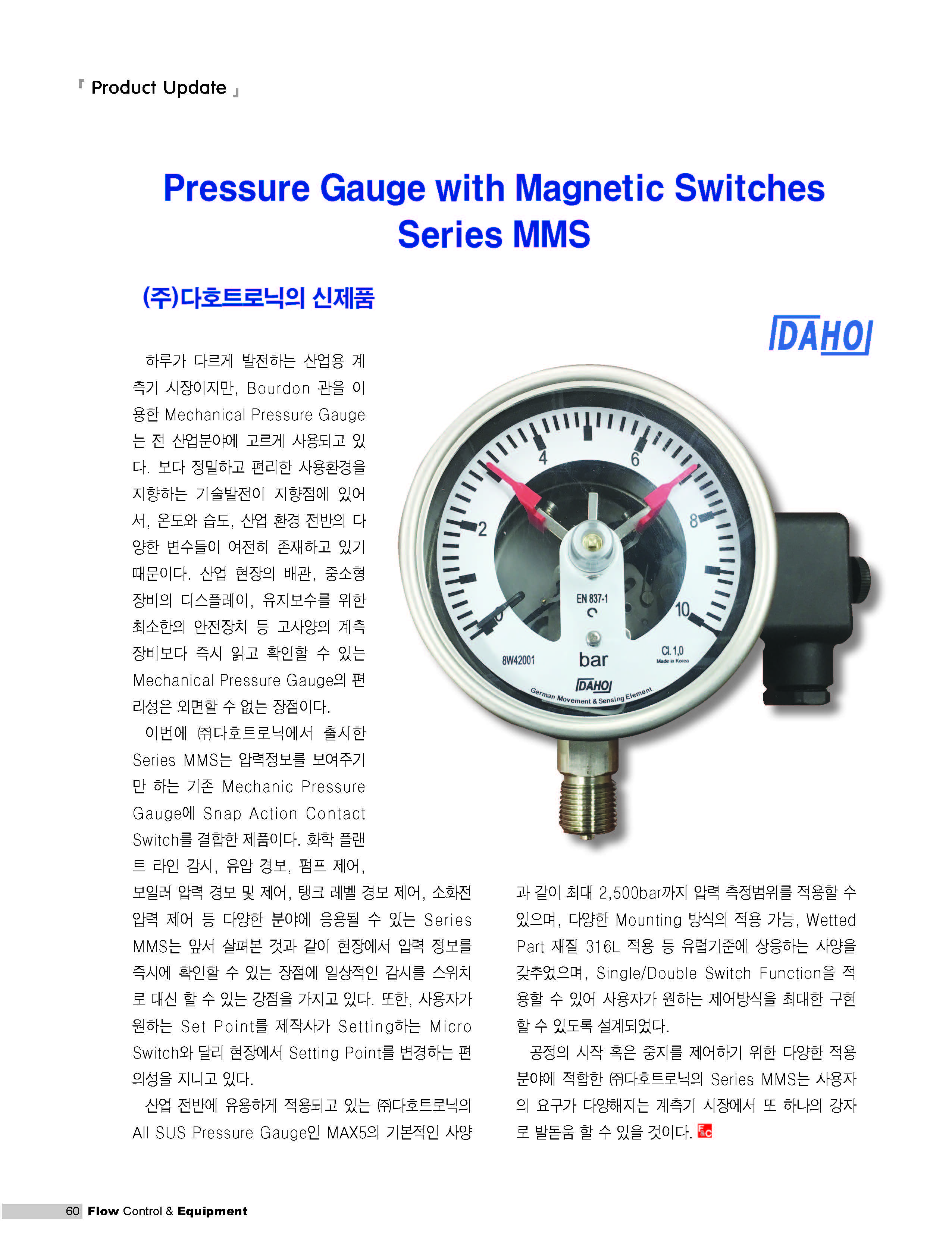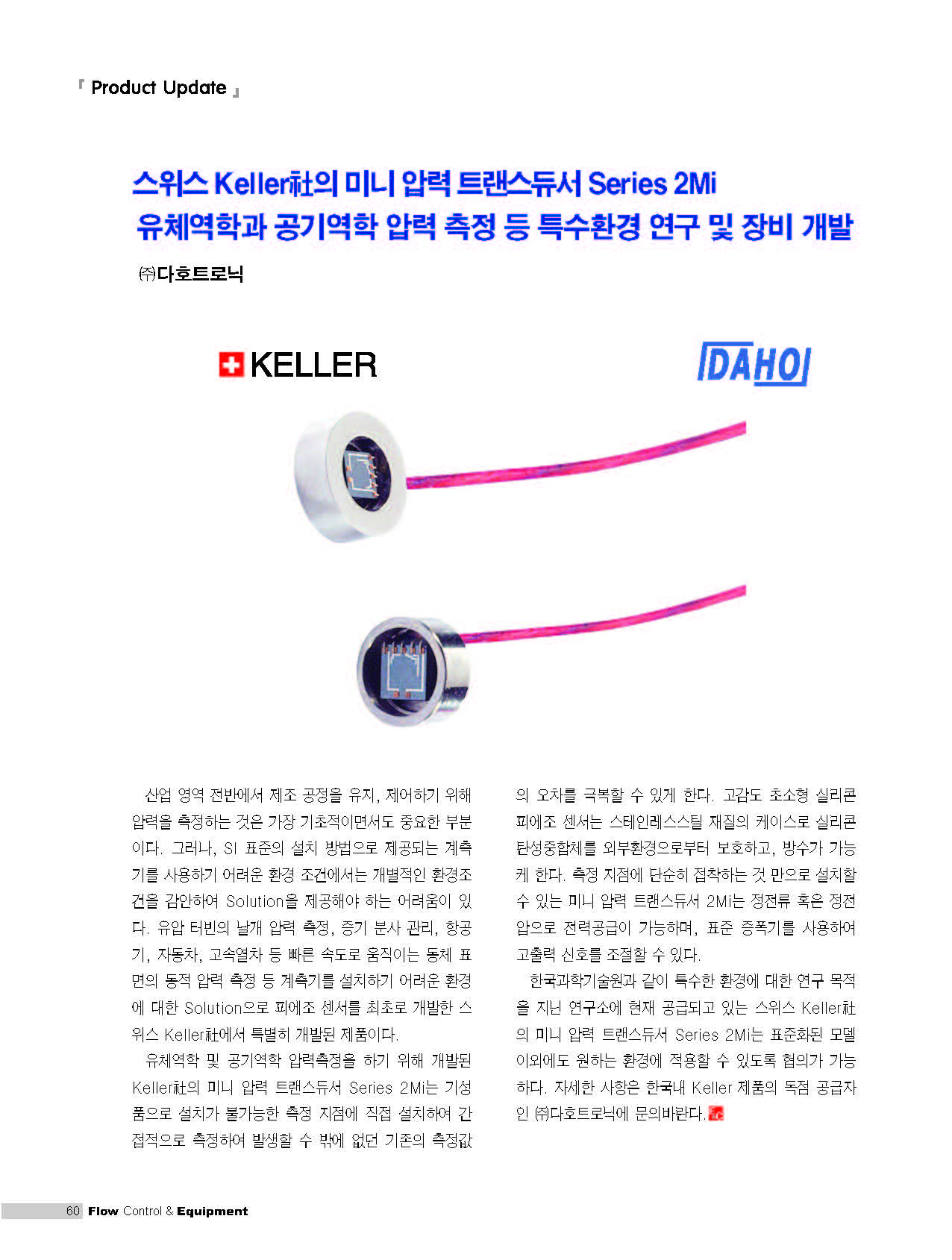 Advertisement Development of Pressure Transmitter ‘EDA.378’ for Railway Vehicle Brake Operating Unit (BOU) Completed EDR.345 Pressure Transmitter for Secondary Batteries, Developed with Korea's Leading Technology (1st Edition) Simex ProSens Line KELLER Series 2Mi Voegtlin GSP+GSB DAHO Series MMS