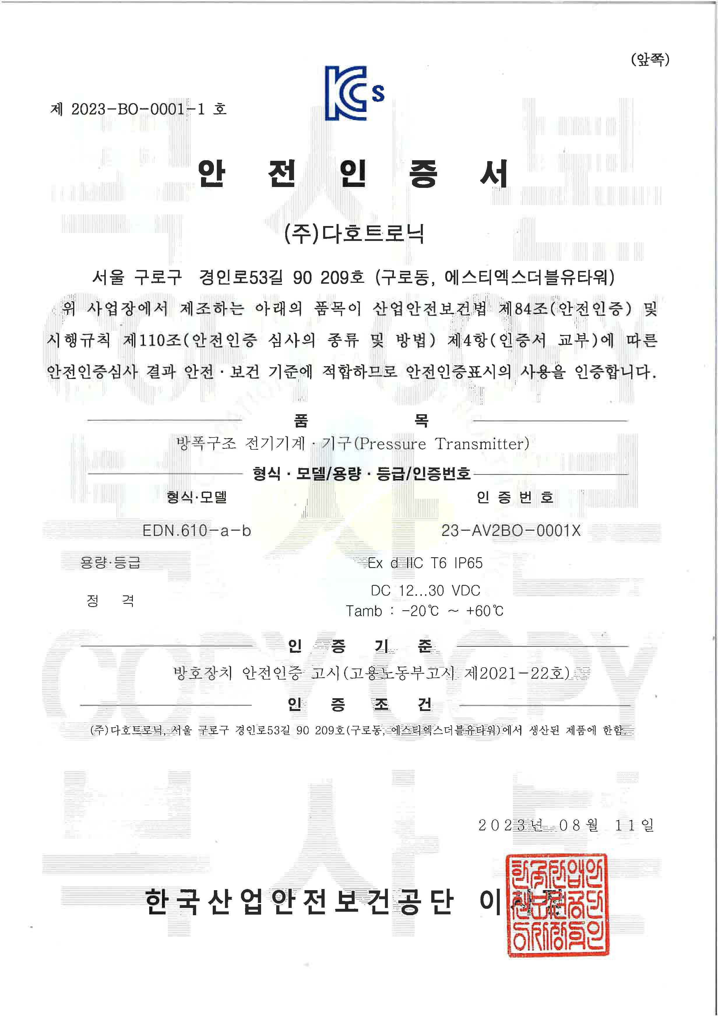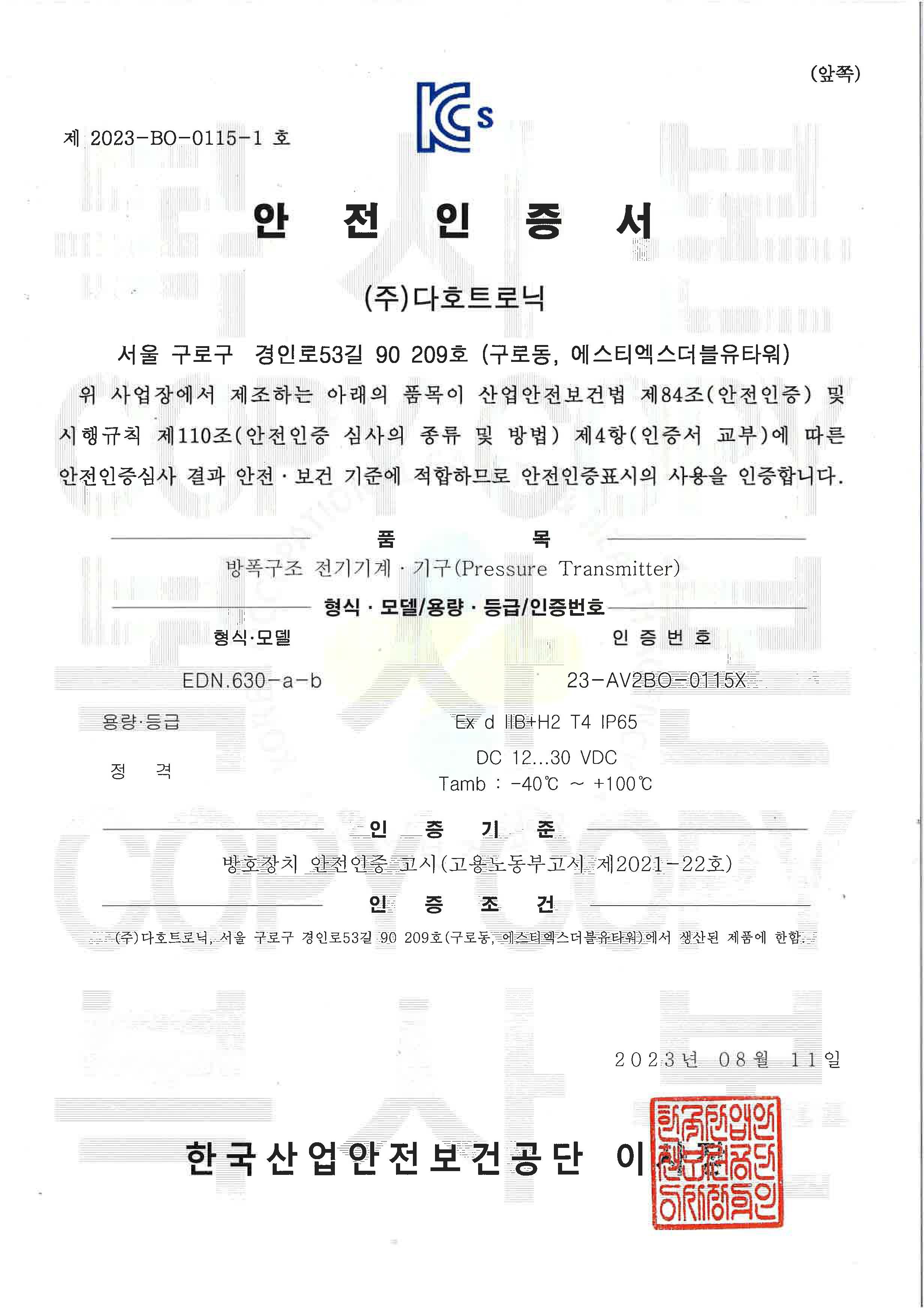 KCS 안전인증서_방폭구조 전기기계.기구_EDN.71X