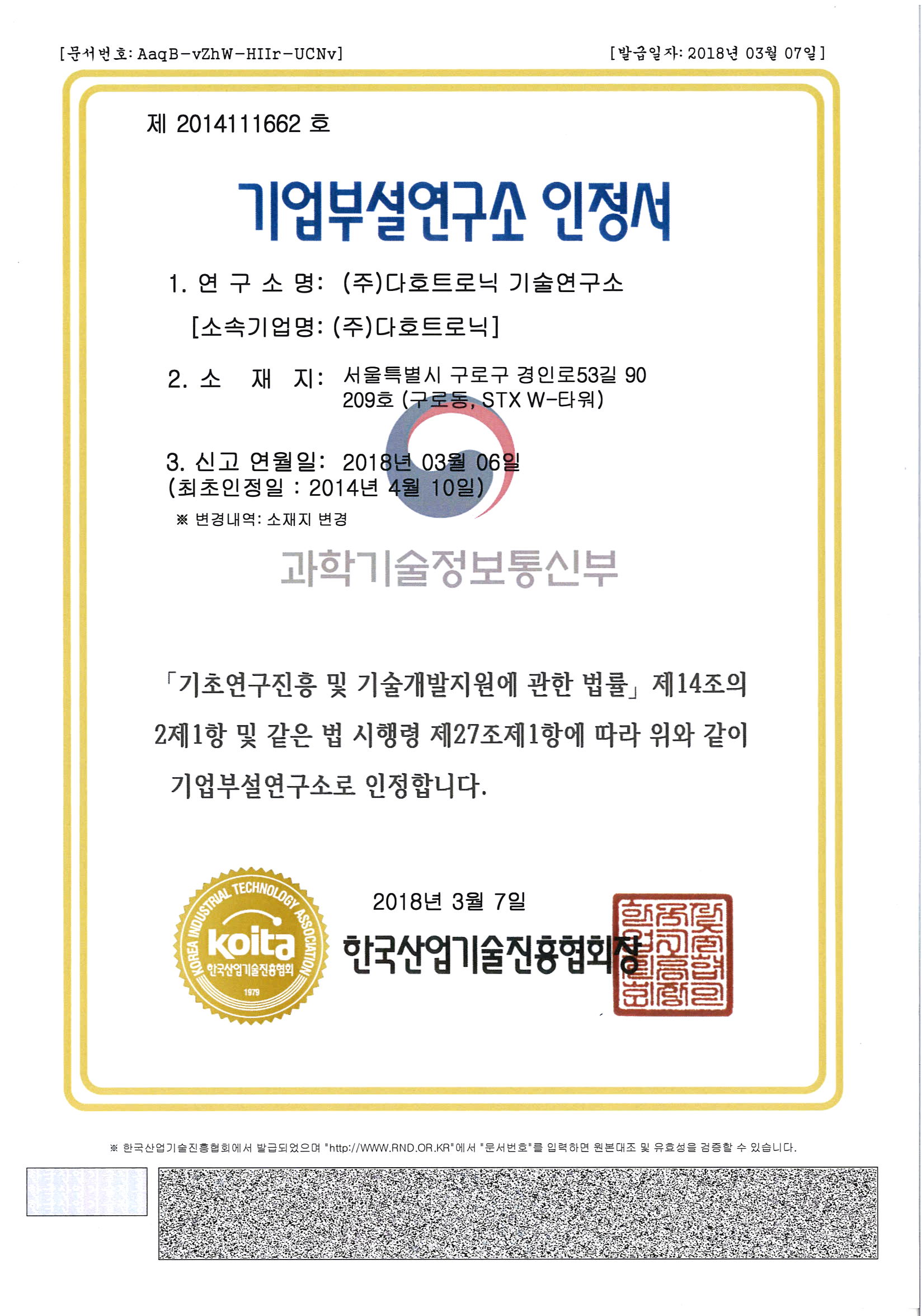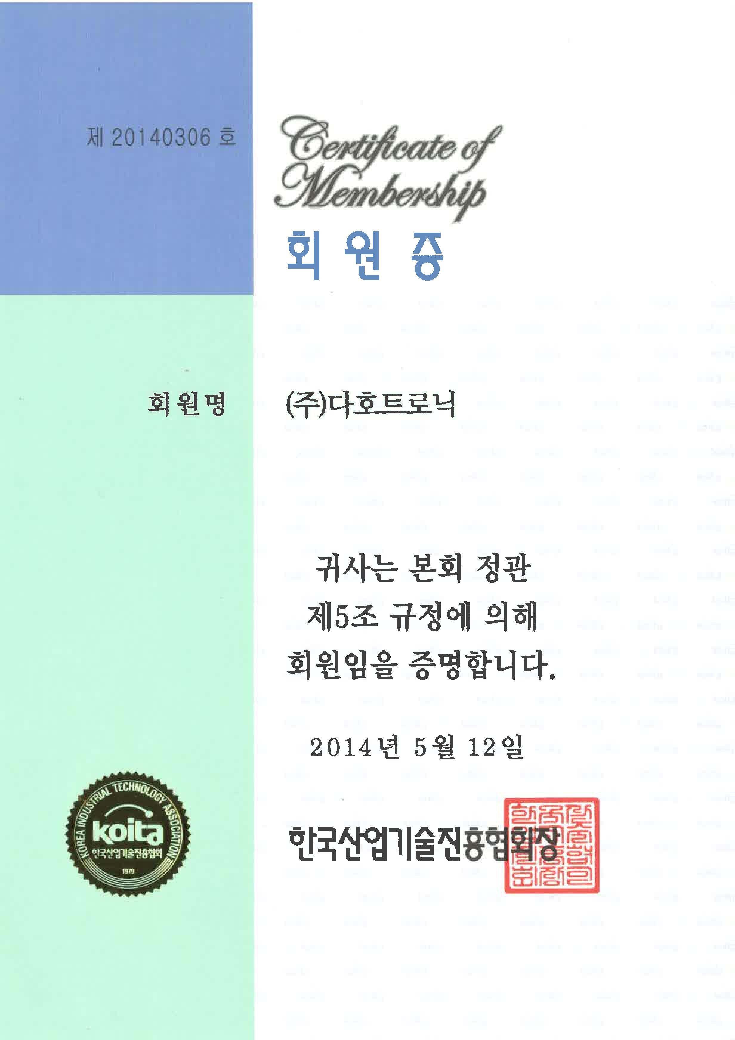 Korea Industrial Technology Association Certificate of Membership 2014.05.12 -