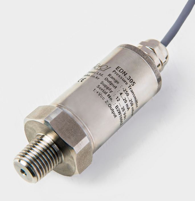 The industrial pressure transistor series EDN is manufactured by Flush Diaphragm based on a Piezoresistive Silicon Sensor made of stainless steel. It was designed and manufactured by incorporating the recent industrial PCB chip design in addition to the latest highly precise manufacturing technology of electronic parts. The electronic parts that receive and amplify signals from pressure sensors can be sent analog signals through Noise, Burst, Insulation, Surge, and the most rigorous process control and quality control processes. It is finally produced by completing the sophisticated calibration work of all products.