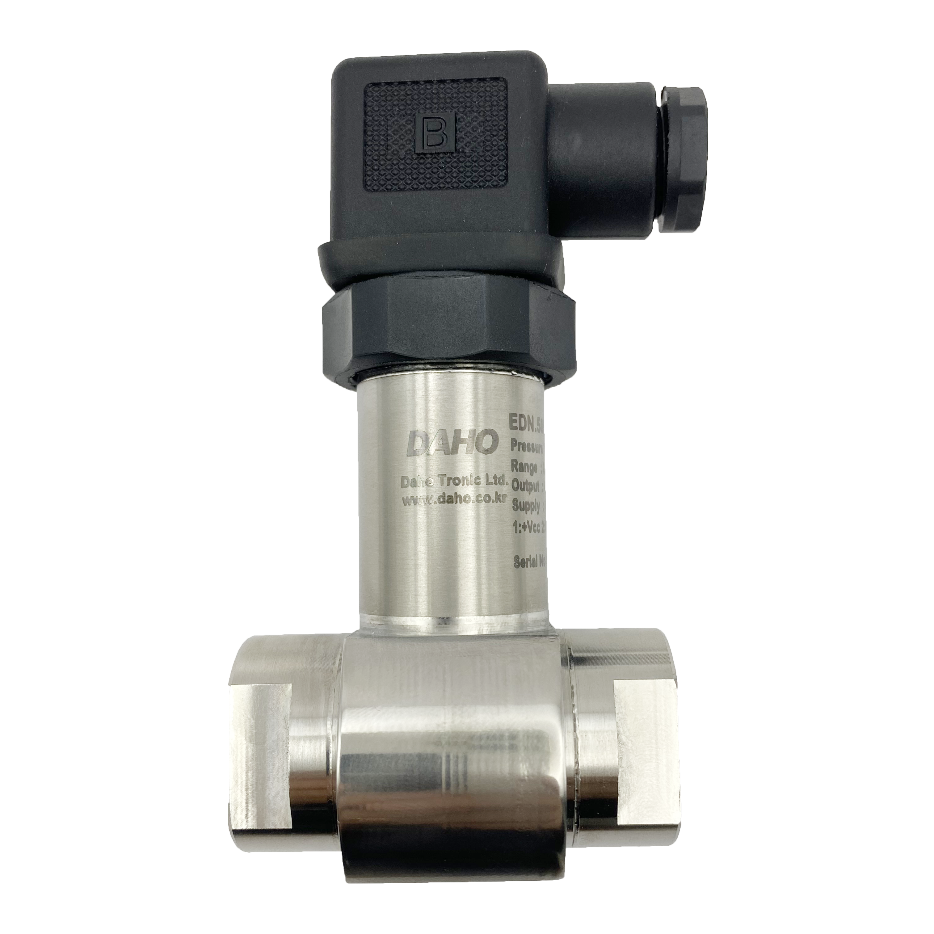 with the fluid are made of stainless steel. The pressure sensor is a