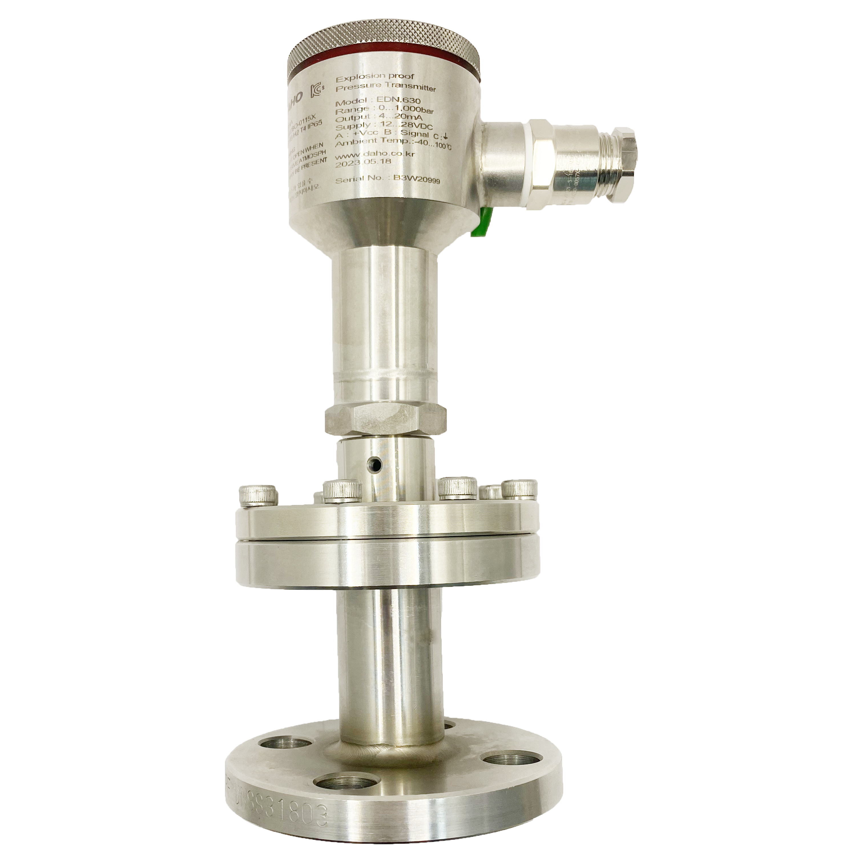 pressure transistor and the wet parts of the process flange are made of