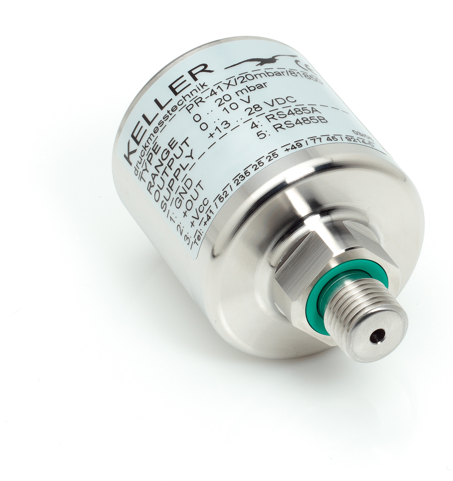 Series 41X는 저압 범위용 세라믹 측정 셀과 디지털 Series 30 트랜스미터의 μP 전자 장치를 결합합니다. 압력 및 온도 센서 신호의 압력 값은 다항식 보상에 의해 결정됩니다. 이 값은 RS485 인터페이스를 통해 PC에 표시 및 저장할 수 있으며 프로그래밍도 수행 할 수 있습니다.
