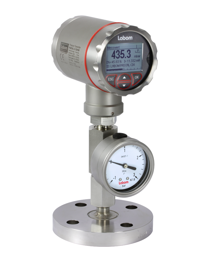 LABOM은 개별 측정 작업을 위한 맞춤형 솔루션을 개발합니다. 한 가지 하이라이트는 Kombar라고 알려진 시스템입니다. 두 개의 서로 다른 측정 시스템이 이 시스템의 단일 측정 지점에 설치됩니다. 기계식 압력 측정 장치는 전원 공급 장치와는 별개로 현장 디스플레이를 연속적이고 읽기 쉽게 제공합니다. 적절한 다이어프램 씰이 장착된 전자식 압력 송신기는 매우 정밀한 전자 값을 시스템의 컨트롤 유닛으로 전송합니다. 법적으로 요구되는 Fail Safe 성능은 Kombar 장치를 통해 쉽게 달성할 수 있습니다. 측정은 단일 프로세스 연결을 통해 두 측정 시스템의 동시 표시를 보장합니다.