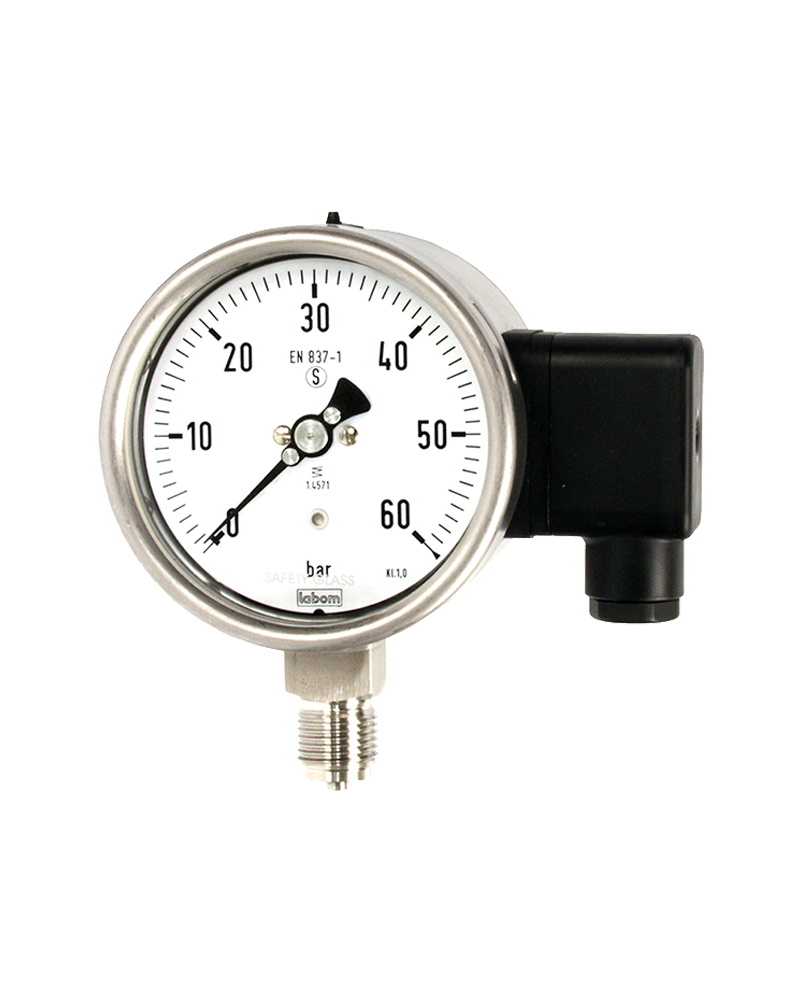 국부 표시가있는 기계식 안전 패턴 게이지 및 압력 값의 전자 전송을위한 전자식 회전 각도 센서입니다.